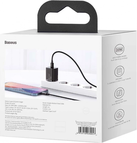 De Super Si-technologie heeft het formaat van de lader verkleind, zodat hij gemakkelijk mee te nemen is zonder concessies aan prestatie of veiligheid. De Baseus-lader past de stroom automatisch aan voor optimaal laden en beschikt over bescherming tegen overbelasting, kortsluiting en oververhitting. In de verpakking vind je een hoogwaardige USB‑C naar Lightning-kabel, slijtvast voor betrouwbare prestaties.