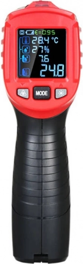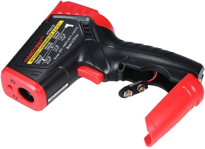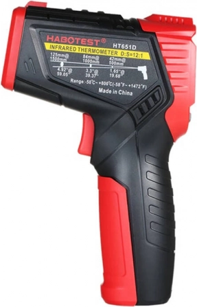 De infraroodthermometer Habotest HT651D staat garant voor ongeëvenaarde meetnauwkeurigheid. Hiermee meet je niet alleen de temperatuur van een specifiek punt, maar ook de omgevingstemperatuur, het dauwpunt en de relatieve luchtvochtigheid. Het kleurendisplay maakt het gebruik eenvoudig en de meegeleverde K-type thermokoppel biedt nog meer mogelijkheden. De thermometer heeft ook een alarmfunctie. Voor de voeding is een 9V 6F22-batterij nodig, die apart moet worden aangeschaft.
