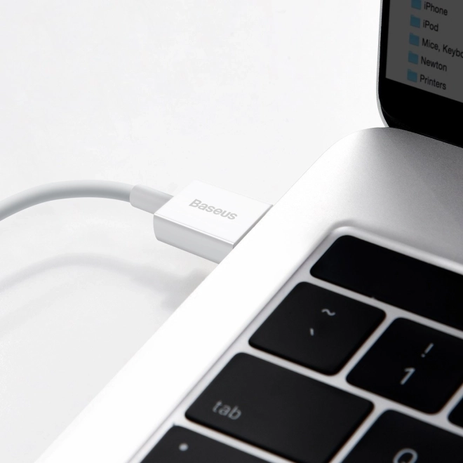 Betrouwbare Baseus-kabel voor iPhone en andere apparaten met een Lightning-connector, met snel opladen tot 2,4 A en gegevensoverdracht tot 480 Mb/s. Dankzij de duurzame constructie van ABS en TPE en een slimme chip voor veilig opladen is hij ideaal voor dagelijks gebruik. Inclusief een praktische kabelband tegen in de knoop raken.