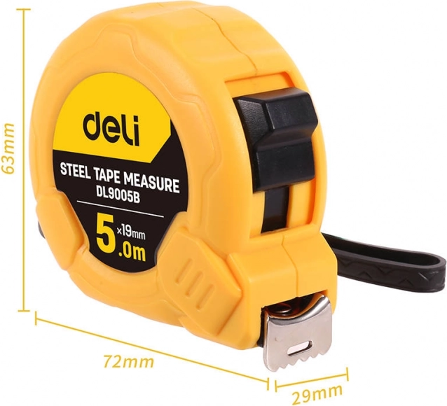 De DELI rolbandmaat is ontworpen voor nauwkeurig en comfortabel meten binnen en buiten. De stijve stalen band met een dikte van 0,11 mm blijft recht en knikt niet, zodat u eenvoudig nauwkeurige resultaten behaalt. Dankzij het automatische slot en het soepel oprollen is het werken veilig en intuïtief.