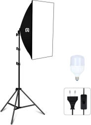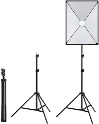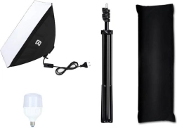De set bevat een softbox van 50x70 cm gemaakt van duurzame reflecterende stof. De softbox met wit nylon scherm verzacht het licht en elimineert schaduwen, wat zorgt voor gelijkmatige verlichting. Eenvoudig in- en uit te vouwen, wat flexibiliteit biedt tijdens gebruik.