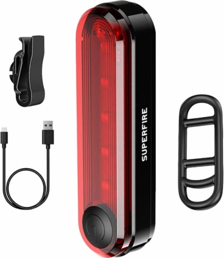 Reis met gemoedsrust met het Superfire achterlicht, ontworpen voor maximale zichtbaarheid. Vier verschillende lichtmodi stellen u in staat om de helderheid aan uw behoeften aan te passen. Dankzij USB-opladen is het snel klaar voor gebruik en de IP44 bestendigheid garandeert weerstand tegen regen.