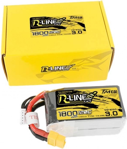 Het Tattu R-Line model biedt een capaciteit van 1800mAh en een ontlading tot 120C, ideaal voor veeleisende toepassingen.