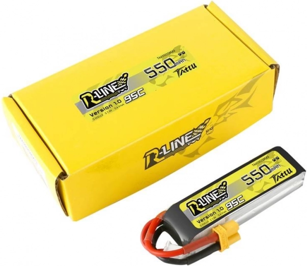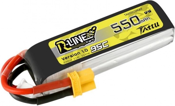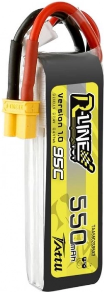 De batterij biedt een capaciteit van 550mAh met een ongelooflijke ontlaadsnelheid van 95C, wat hoge prestaties voor uw drones garandeert.