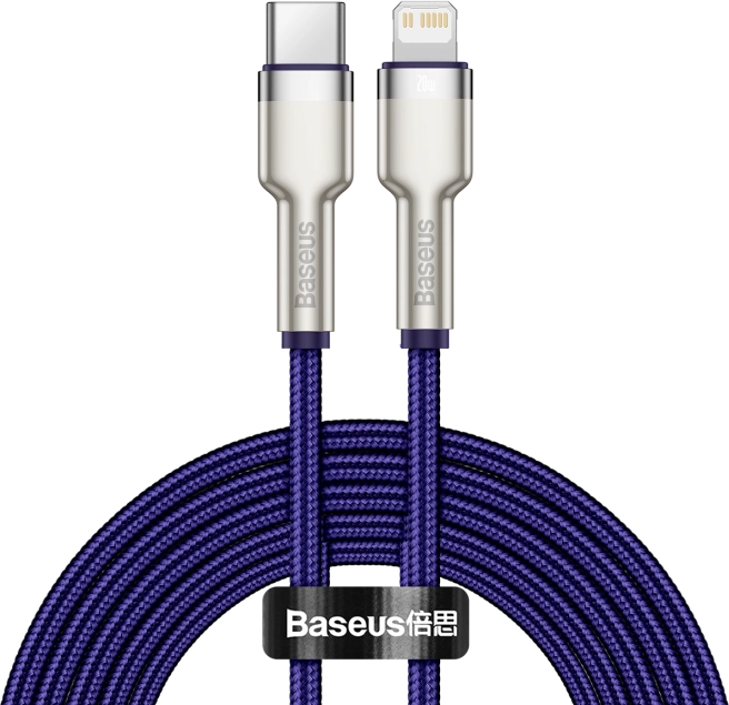 Universele Baseus USB‑C naar Lightning‑kabel voor Apple‑apparaten met snelladen Power Delivery 20 W en gelijktijdige gegevensoverdracht van 480 Mb/s. Dankzij de duurzame nylon gevlochten mantel en metalen uiteinden van zinklegering biedt hij een lange levensduur, terwijl intelligente stroom- en spanningsregeling je apparaat beschermt en een stabiele connector‑temperatuur behoudt.
