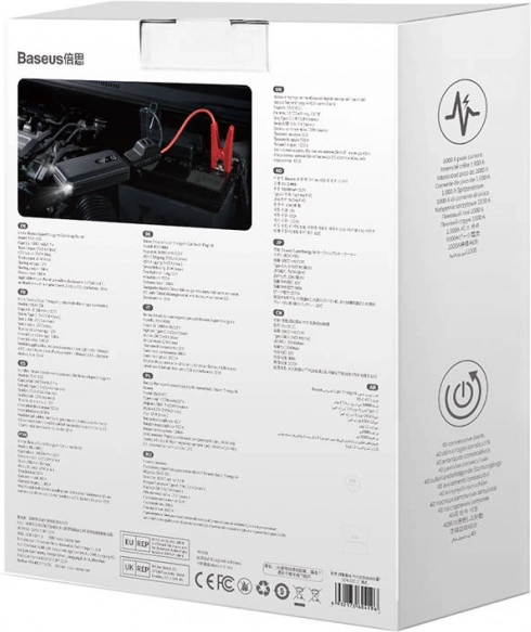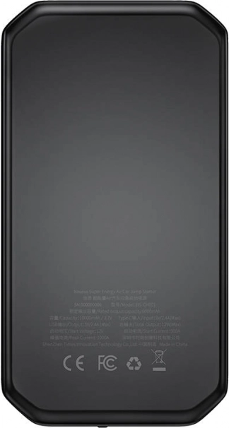 BASEUS Super Energy is een multifunctionele autostarter en powerbank in één. Met een capaciteit van 10000 mAh en een piekstroom van 1000 A start hij betrouwbaar voertuigen met 12V systemen (benzine tot 4 l, diesel tot 2,5 l). Dankzij de USB‑A en USB‑C poorten (tot 2,4 A) laadt u snel telefoon, koptelefoon of andere elektronica op – ideaal voor onderweg en in noodgevallen.
