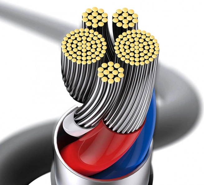Veiligheid is belangrijk; daarom is de kabel beschermd met duurzaam siliconen, SGS‑gecertificeerd. Hij raakt niet in de knoop, breekt niet en is bestand tegen vlekken, wat een groot voordeel is ten opzichte van gewone rubberen kabels.