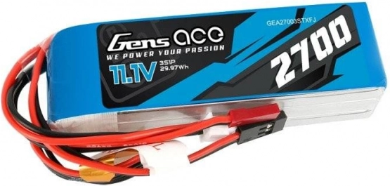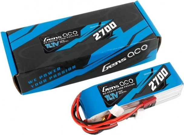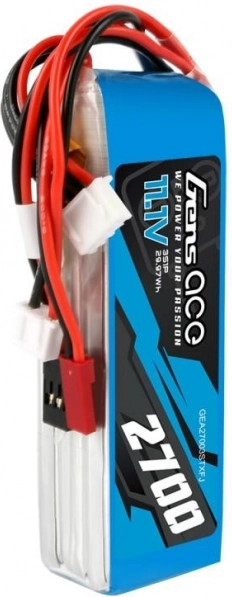 De Gens Ace batterij met een capaciteit van 2700mAh en een spanning van 11.1V is ontworpen voor betrouwbare voeding van op afstand bediende apparaten. Met hoge prestaties en connectors FUTABA/JST-XHR-3P/JST-SYP is het een ideale keuze voor modelbouwers.