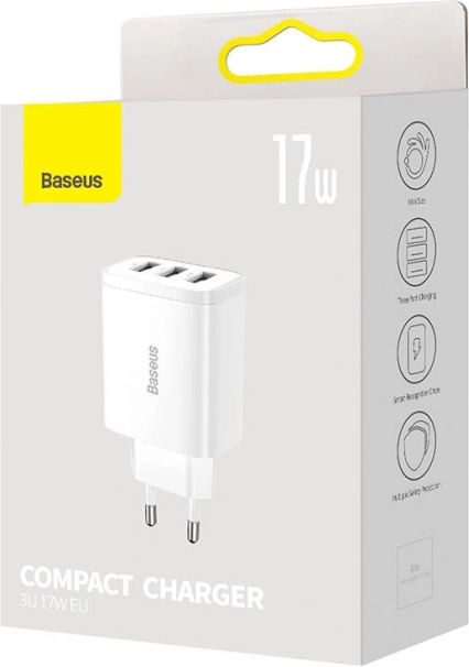Op zoek naar een universele lader voor je telefoon, oortjes en andere elektronica? Deze compacte BASEUS-adapter combineert 17 W vermogen met een drievoudige USB-uitgang, zodat je comfortabel tot drie apparaten tegelijk kunt opladen. De geïntegreerde chip herkent automatisch het aangesloten apparaat en kiest de optimale stroom voor snel en zacht opladen.