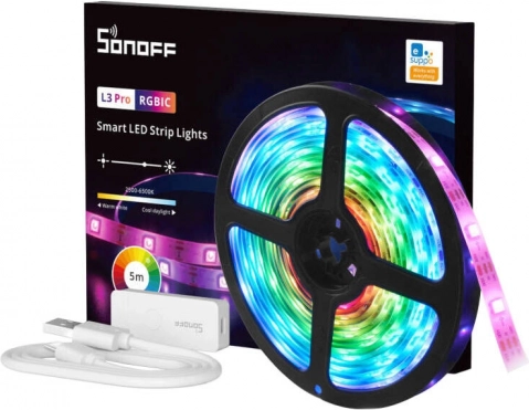 De slimme LED-strip Sonoff L3 Pro introduceert innovatieve RGBIC-achtergrondverlichting, waardoor elke LED gelijktijdig in een andere kleur kan branden. Het is de ideale keuze voor feestjes, romantische diners of tuinfeestjes.