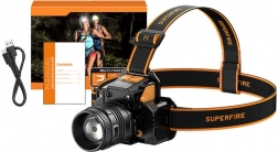 Lichte en krachtige Superfire-hoofdlamp met stabiel licht van 350 lm en een reikwijdte tot 200 m. Dankzij 3 standen, traploze verstelling van het lichtvermogen (zoom) en 90° kanteling pas je de lichtbundel eenvoudig aan elke situatie aan. Geïntegreerd USB-opladen, powerbankfunctie, een capaciteit van 2400 mAh en een gebruiksduur tot 4,5 uur maken hem ideaal voor wandelen, werk en vissen. Praktische batterijstatus-indicatoren en een comfortabele elastische hoofdband verhogen het gebruikscomfort.