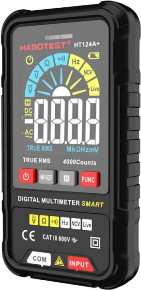 De compacte digitale multimeter HABOTEST HT124A+ is een betrouwbare hulp voor zowel thuis als professioneel meten. Hij biedt True RMS, nauwkeurige meting van AC/DC-spanning, weerstand en frequentie, en beschikt over NCV contactloze spanningsdetectie, Live Test, praktische displayverlichting en een zaklamp. Dankzij het overzichtelijke grote display en de eenvoudige bediening is hij ideaal voor snel en veilig testen.