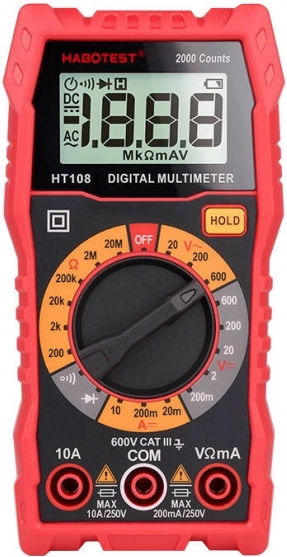 De digitale multimeter Habotest HT108L is een multifunctioneel apparaat dat uitstekend presteert bij het werken met elektrische apparatuur. Het product maakt het mogelijk om spanning, weerstand en vele andere waarden te meten. De multimeter heeft een overzichtelijk display voor comfortabel uitlezen van de meetresultaten, en is bovendien uitgerust met een zaklamp en praktische knoppen.