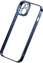Blauwe randen en een transparante achterkant benadrukken de uniciteit van je telefoon en zijn bestand tegen vergeling.