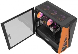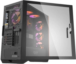 Het scharnierende glaspaneel accentueert jouw componenten en RGB op elegante wijze. De praktische handgreep zorgt voor snelle toegang tot de hardware en eenvoudig onderhoud.
