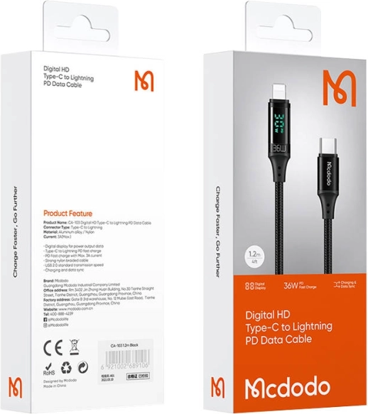 Laad je iPhone of iPad snel en veilig op. De Mcdodo‑kabel met USB‑C naar Lightning ondersteunt Power Delivery en past stroom en spanning intelligent aan voor zorgzaam laden. Dankzij het gebogen LED‑display heb je inzicht in het actuele vermogen en de ondersteuning voor snelladen.