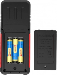 Duurzame constructie: Het apparaat is gemaakt van ABS-kunststof, wat hem bestand maakt tegen vallen, stof en water. Het ergonomische ontwerp zorgt voor comfortabel gebruik en de speciale hoes beschermt de meetpinnen tegen beschadiging.