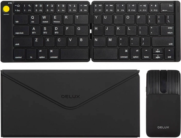 De set DELUX KF10 + MF10PR combineert mobiliteit, comfort en universele compatibiliteit. Het opvouwbare toetsenbord met ultradun profiel (minder dan 6,6 mm) biedt stille toetsen voor ongestoord typen in de bibliotheek of het café. De muis is ergonomisch en licht, aangevuld met een touchpad voor intuïtieve bediening en een laserpointer‑functie voor professionele presentaties.