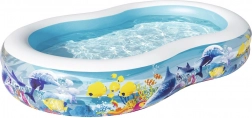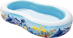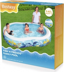 Het opblaasbare zwembad BESTWAY Fish 'n Friends tovert je tuin om tot een kleurrijk onderwaterparadijs. De ovale vorm biedt volop ruimte om te spelen en te spetteren, terwijl de brede zijwanden zorgen voor comfort en stabiliteit. Het hoogwaardige PVC/vinyl is goed bestand tegen normaal gebruik tijdens warme zomerdagen.
