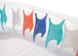 Transparante wanden met kleurrijke golven zien er aantrekkelijk uit en zorgen tegelijk voor beter toezicht op de kinderen tijdens het waterplezier.