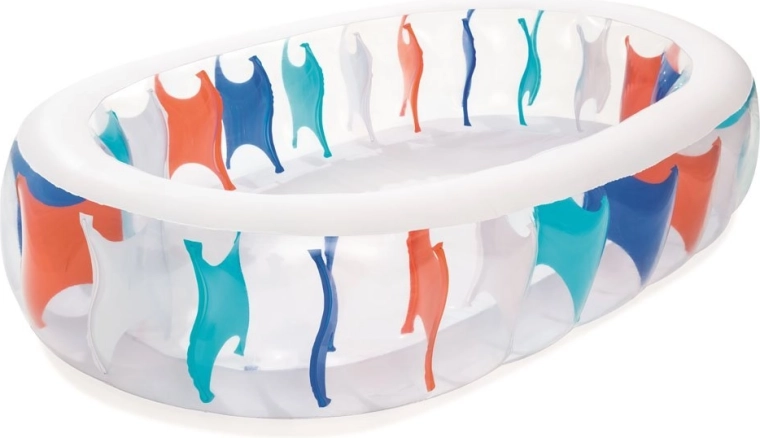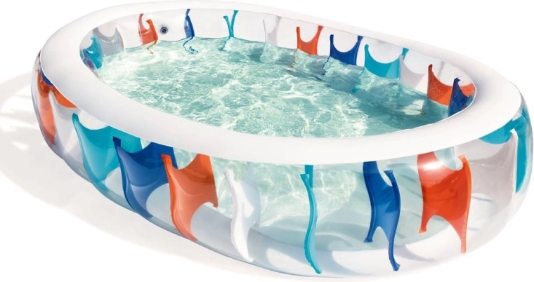 Geniet van de zomer met het ruime opblaaszwembad van 229 × 152 × 51 cm, dat op de meeste tuinen en terrassen past. Transparante wanden met kleurrijke panelen geven een speelse uitstraling en laten je tegelijk duidelijk zicht houden op de kinderen in het water.