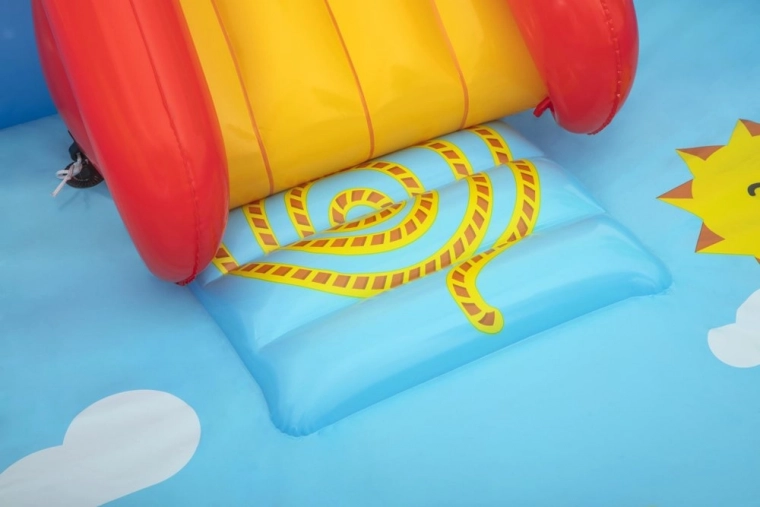 Geniet volop van de zomer met het thematische Bestway Wild West watercentrum. Het kleurrijke design, de veilige constructie en doordachte extra’s garanderen uren actieve buitenpret. De geïntegreerde sprinkler sluit je direct aan op de tuinslang en voor comfortabel glijden zorgt het opblaasbare kussen in de bodem.