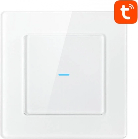 Stijlvolle aanraakschakelaar voor het slimme huis met wifi, bediening via Tuya / Smart Life en spraakassistenten. Biedt 1 knop, gehard glas, laag energieverbruik en eenvoudige installatie.