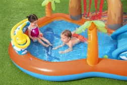 Voor maximaal comfort ontbreekt het niet aan een afneembaar peuterbadje, een praktische aftapplug en een reparatiepatch in de verpakking. Het kleurrijke, tropische design nodigt uit tot ontdekken en stimuleert actieve beweging en creatief spel.