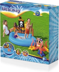 Kinderen zullen dol zijn op het piratenschip met roer, de vrolijke octopus en de vier opblaasbare sterretjes voor werpspelletjes. Snelle installatie zonder gereedschap en het lage gewicht maken verplaatsen en opbergen eenvoudig. De capaciteit van 84 l is ideaal voor verfrissing op warme dagen.