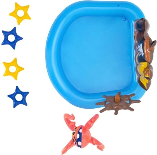 Tover je tuin om tot een klein waterparadijs. Deze opblaasbare piraten-speelplaats van BESTWAY biedt een blauw badje met scheepsdecor, een draaibaar roer, werpringen/sterretjes en een vrolijke octopus. Gemaakt van duurzaam PVC, eenvoudig op te zetten en ideaal voor veilige waterpret voor de allerkleinsten.