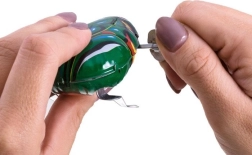 Deze schattige speelgoedkikker is gemaakt van metaal in een mooie groene kleur en wordt aangedreven door een veermechanisme dat met een sleutel wordt opgewonden. De kikker brengt een glimlach op het gezicht van alle generaties. Dankzij de kleine afmetingen past hij gemakkelijk in de hand van een kind en is perfect voor grappige momenten als hij bijvoorbeeld in een tas verstopt zit. Zorg ervoor dat je hem als geluksbrenger bij je hebt!