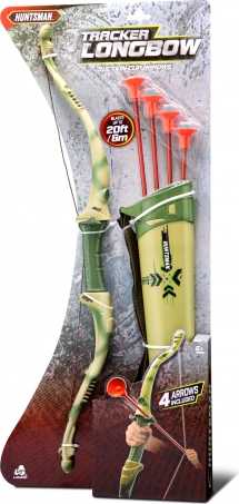 Word een kleine jager en geniet van leuk schieten met de kinderboog Huntsman Longbow! In de set zitten 4 veilige pijlen met zuignappen en een koker met verstelbare riem. De boog heeft een gevlochten pees, elastische latten en een bereik tot 6 meter. Ideaal voor kinderen vanaf 6 jaar.