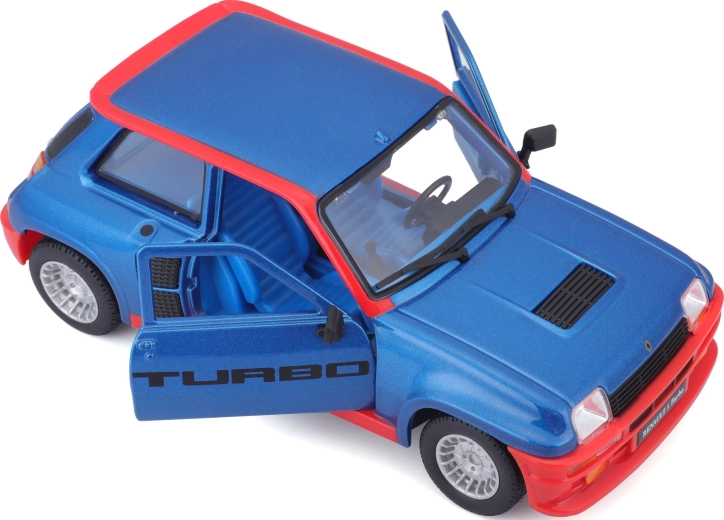 Het Bburago-model Renault 5 Turbo brengt een getrouwe replica van de legendarische auto met iconische brede spatborden en sportieve details. In blauwe kleur met rode accenten en het opvallende opschrift TURBO oogt hij als een echte racespecial.
