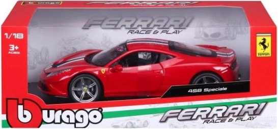 Metalen model uit de Bburago-serie 1:18 Ferrari 458 Speciale Ferrari Race&Play rood.