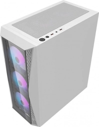 Zijpaneel en front van gehard glas accentueren de componenten en ARGB‑effecten. De elegante witte behuizing past perfect in zowel gaming- als kantooropstellingen.
