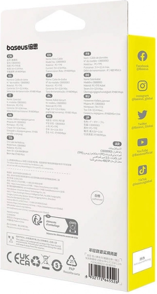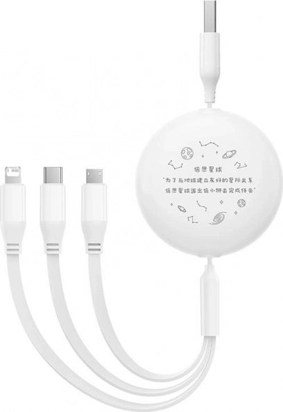 Zoek je één kabel voor al je apparaten? De intrekbare BASEUS 3‑in‑1 kabel combineert USB‑C-, Micro USB- en Lightning-connectoren, zodat je eenvoudig Android, iOS en accessoires bedient. Ondersteunt opladen tot 3,5 A en gelijktijdig datatransfer van 480 Mb/s, zodat je foto’s en video’s in een mum van tijd kopieert.