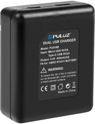 Dankzij de uitgangsspanning van 4,4 V en een stroomuitgang van 800 mA laadt de Puluz-oplader de batterijen van de HERO 9, 10, 11 en 12 efficiënt en veilig op.