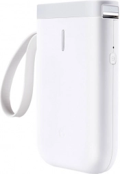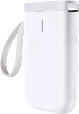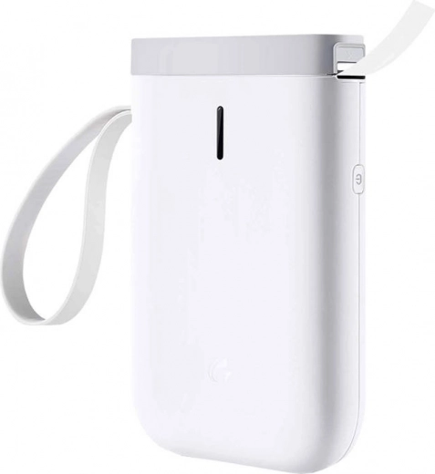 Het apparaat verbindt via Bluetooth met smartphones met Android en iOS. De compacte behuizing (132 × 79 × 29 mm, 182 g) met praktische draaglus is ideaal voor onderweg en op kantoor. De geïntegreerde 1500 mAh batterij zorgt voor comfortabel gebruik; opladen gebeurt via micro-USB. In de doos zit een startersrol (tot 160 labels), zodat je meteen kunt beginnen met printen.