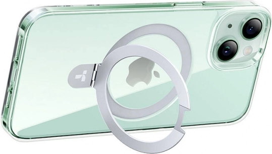Elegant en duurzaam hoesje Torras UPRO Ostand Clear voor iPhone 15 met magnetische compatibiliteit voor accessoires, een geïntegreerde standaard met 40°–120° verstelbereik en militaire beschermingsklasse dankzij verstevigde hoeken. Het doorzichtige, slanke design benadrukt het oorspronkelijke uiterlijk van de telefoon en zorgt voor comfortabel dagelijks gebruik.