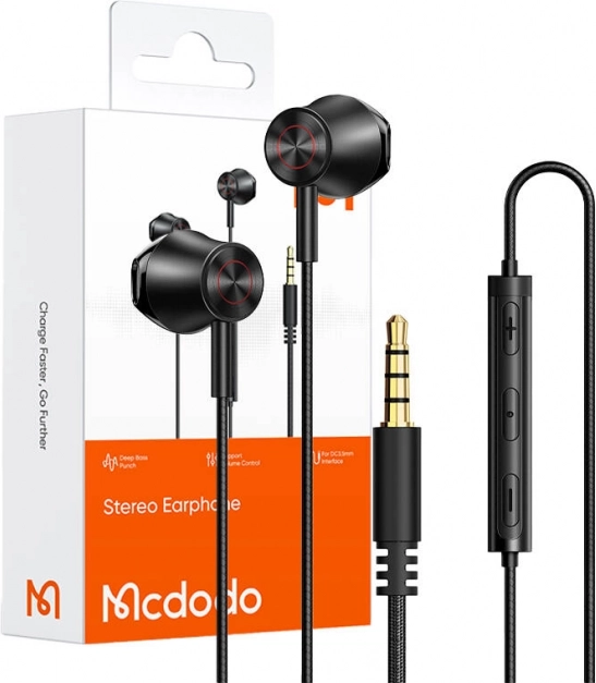 Geniet van helder en gebalanceerd geluid met de bedrade oordopjes van Mcdodo. De klassieke 3,5 mm audio‑aansluiting zorgt voor eenvoudig plug‑and‑play met de meeste telefoons, laptops en spelers. De lichte constructie met ergonomisch in‑ear design zit comfortabel in het oor en helpt om omgevingsgeluid te verminderen.