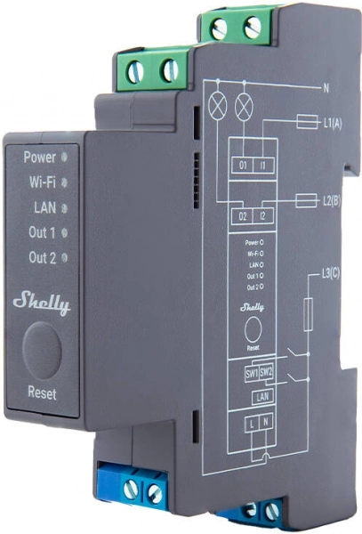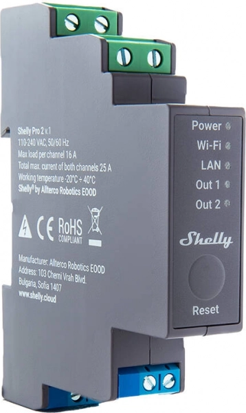 Shelly Pro 2 is een geavanceerd tweekanaals relais voor montage op een DIN-rail, met ondersteuning voor koppeling via WiFi, LAN en Bluetooth. Elke kanaal kan een belasting tot 16 A aan, wat het relais ideaal maakt voor diverse toepassingen in huis- en gebouwautomatisering. Het is compatibel met populaire spraakassistenten en biedt veel flexibiliteit en comfortabele bediening.