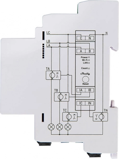 Shelly Pro 3EM 120 A is een betrouwbare driefasige energiemeter voor gedetailleerd inzicht in het verbruik. Hij meet spanning, stroom en werkelijk/schijnbaar vermogen in realtime per fase, bepaalt de arbeidsfactor en slaat minutengegevens tot 60 dagen op voor nauwkeurige analyse. Dankzij ondersteuning voor LAN, Wi‑Fi en Bluetooth sluit je hem eenvoudig aan, ook zonder cloud.