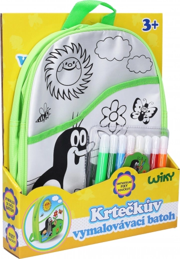 Leuke en creatieve kleurplaat-rugzak met het motief van DE MOL voor kleine kunstenaars. In de verpakking zitten 8 gekleurde textielstiften die eenvoudig uit te wassen zijn met koud water. Ideaal voor uitstapjes en de kleuterschool, afmeting ca. 30 × 27,5 cm, aanbevolen vanaf 3 jaar.