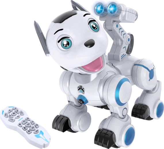 Deze schattige op afstand bestuurbare robotische hond is een geweldige speelkameraad voor kinderen vanaf 3 jaar. Hij kan vooruit en achteruit lopen, sturen, zijn hoofd draaien, blaffen en janken en verrast met licht- en geluidseffecten. Dankzij het dansen en grappige reacties verovert hij snel de harten van jong en oud. Hij wordt gemakkelijk via USB opgeladen en is klaar om zij aan zij jouw terrein te bewaken.