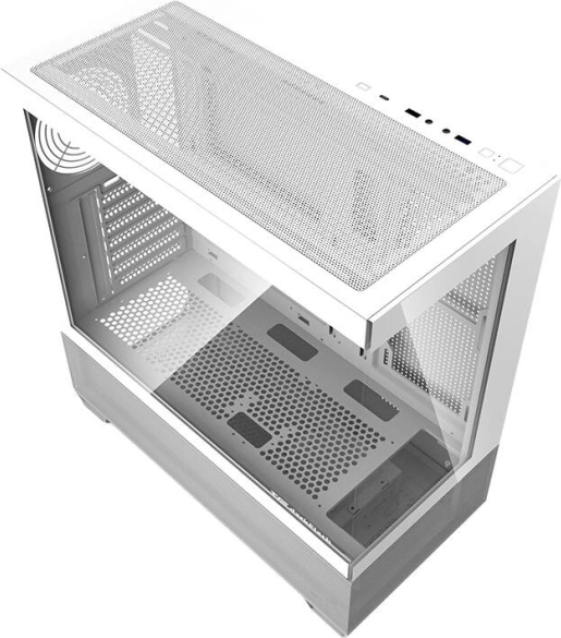 De DARKFLASH DS900 Air is een elegante midi‑tower in het wit met voor- en linker panelen van gehard glas, waarmee je build echt tot zijn recht komt. Dankzij doordachte luchtstromen, perforaties en ondersteuning voor tot 7 ventilatoren houd je eenvoudig lage temperaturen, zelfs bij krachtige componenten. Stabiele trapeziumvormige voetjes met dempende pads minimaliseren vibraties en verbeteren het gebruikscomfort.