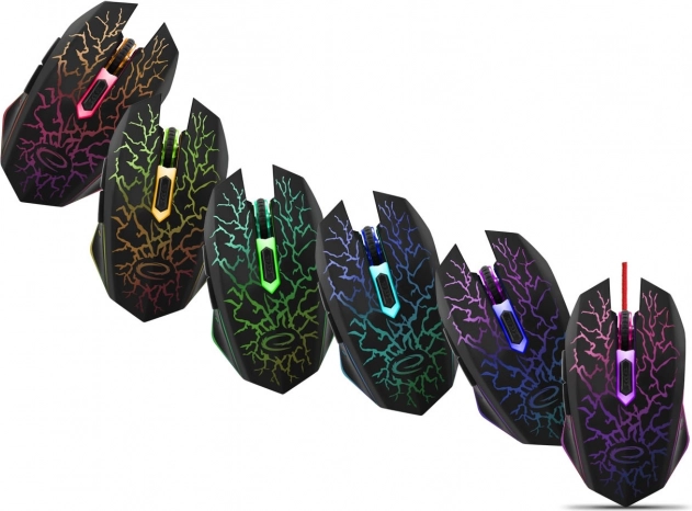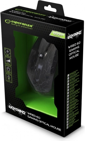 Stijlvolle gamingmuis van Esperanza voor gamers met een nauwkeurige optische sensor met een resolutie tot 2400 DPI, ergonomische vorm voor comfort tijdens lange speelsessies en praktische zijknoppen, inclusief de snelle Double Click-functie. De duurzame constructie met versterkte kabel en opvallende RGB/LED-verlichting met bliksempatroon maakt elke gaming-setup compleet.