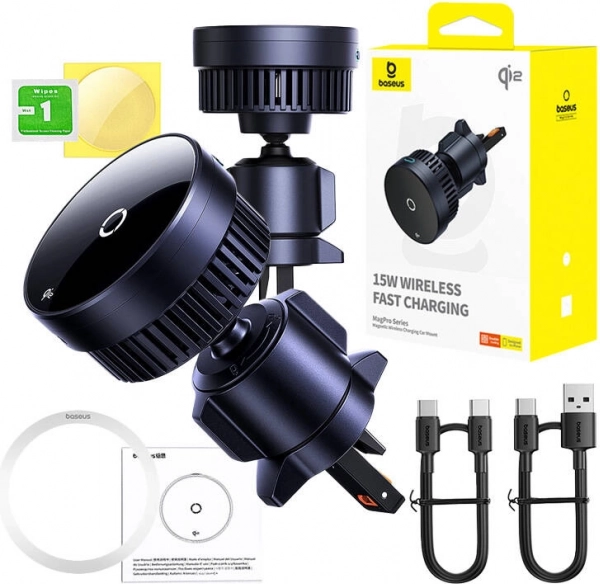 De BASEUS MagPro is een elegante autohouder die stevige magnetische bevestiging combineert met snel draadloos opladen van 5/7,5/10/15 W. Dankzij de Qi2-certificering en slimme bescherming wordt je smartphone beschermd tegen oververhitting, overspanning en kortsluiting. De montage op het ventilatierooster is eenvoudig en zorgvuldig – speciale haakjes zorgen voor stabiliteit en voorkomen schade aan de lamellen.