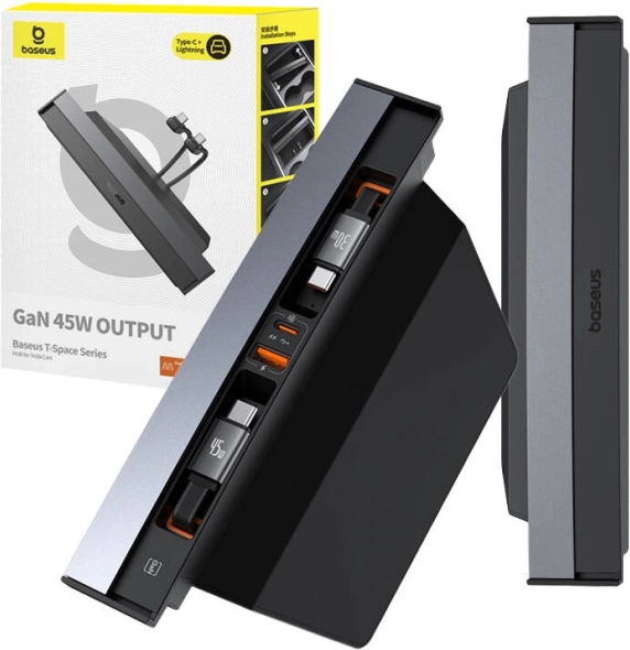 De Baseus T‑Space is een elegante en praktische verdeler, ontworpen voor het interieur van TESLA‑voertuigen (Model 3 en Y – ondersteuning voor gegevensoverdracht). Hij beschikt over twee intrekbare USB‑C‑kabels (0,8 m) met magnetische uiteinden voor nette opslag en over twee extra poorten USB‑C en USB‑A. Zo kan hij in totaal tot 4 apparaten tegelijk van stroom voorzien – van smartphones en tablets tot koptelefoons en gamecontrollers.