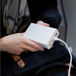 Hij is gemaakt van duurzame lithium‑polymeer cellen met een lange levensduur, waarvan de capaciteit na 300 cycli nog steeds tot 70% van de oorspronkelijke waarde bedraagt. En dankzij het stijlvolle ontwerp, dat klassiek wit combineert met indrukwekkende technische specificaties, is het ook een esthetische aanvulling op uw dagelijkse benodigdheden.