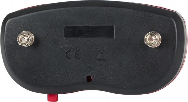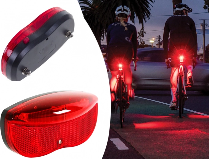 De installatie is snel en probleemloos – het licht wordt met twee bouten bevestigd op de meeste gangbare dragers (boutafstand 8 cm). De robuuste behuizing kan regen, kou en trillingen aan, en de voeding wordt geleverd door overal verkrijgbare 2× AA-batterijen, die zijn inbegrepen. Het product is CE-gecertificeerd.